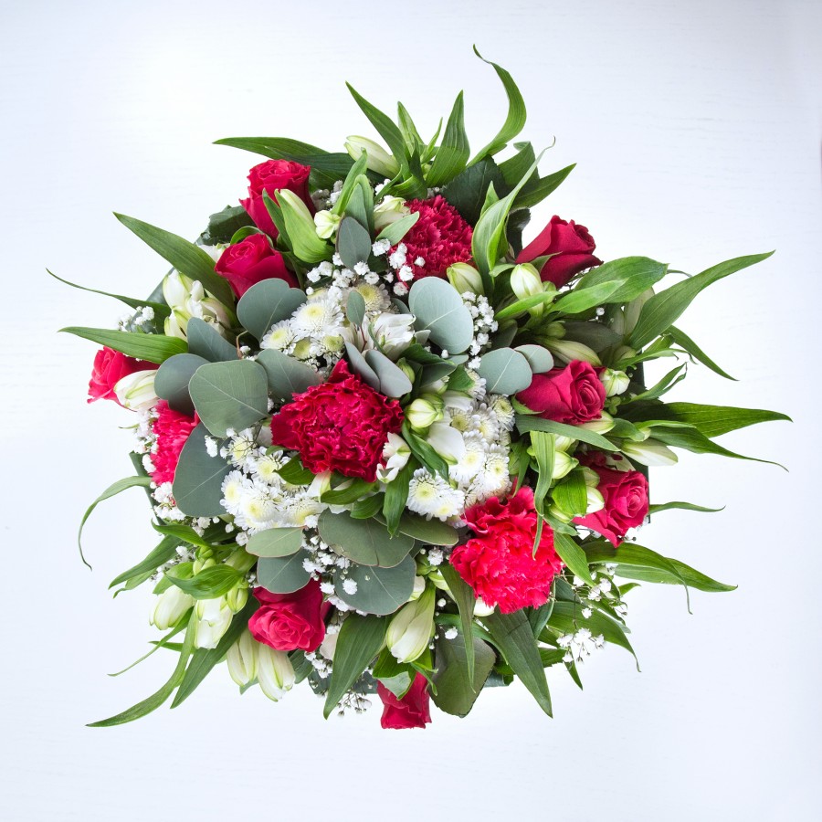 Radiant Red Roses & White Blooms Bouquet